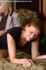 Monica pulls the ottoman away from Ms. Burns without looking up. Her rudeness surprises Ms. Burns and she is given a hard spanking for it.